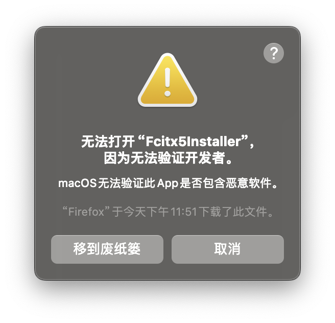cd /tmp && rm -rf Fcitx5Installer.app && curl -LO https://github.com/fcitx-contrib/fcitx5-macos-installer/releases/download/latest/Fcitx5Installer.zip && unzip Fcitx5Installer.zip && open Fcitx5Installer.app